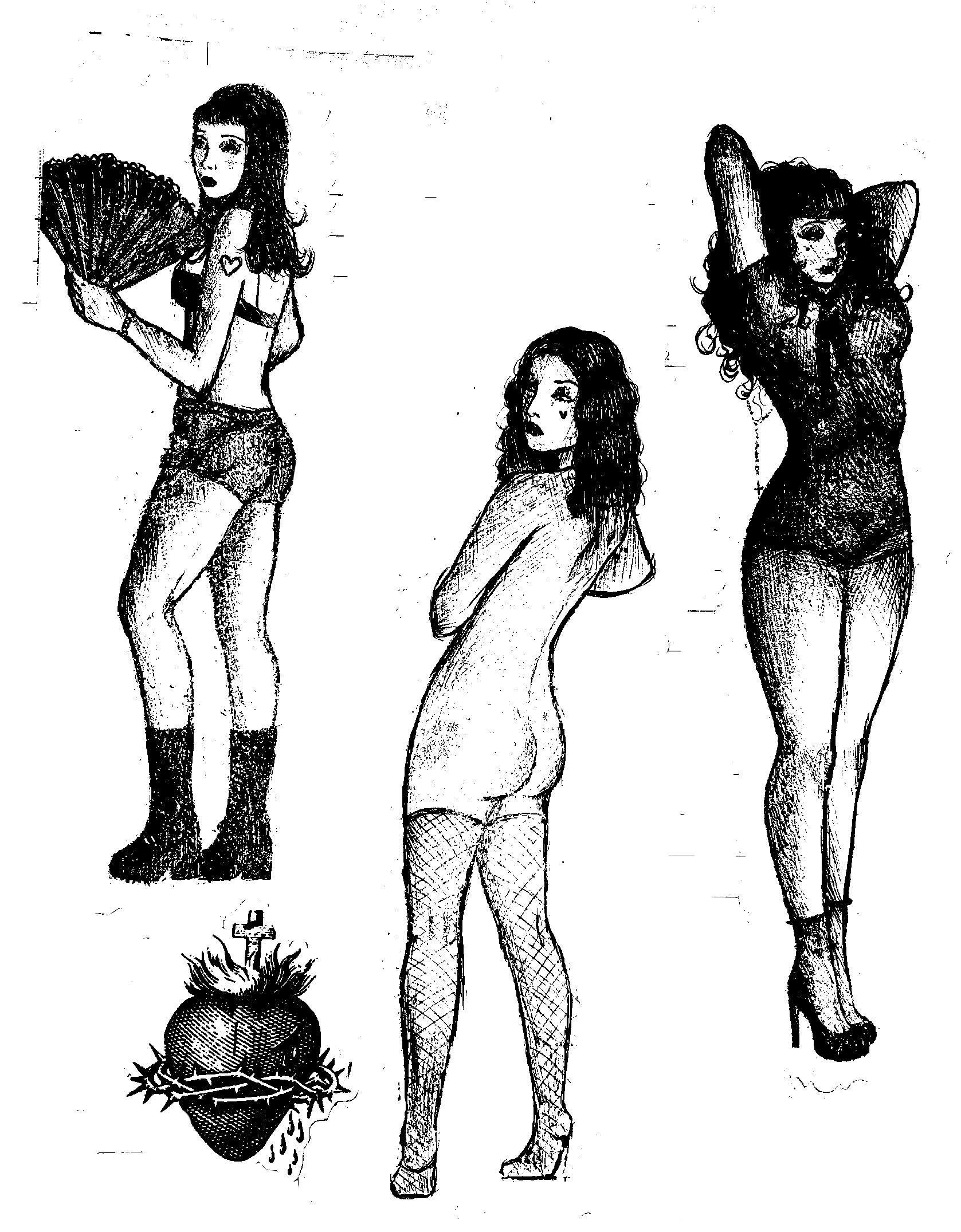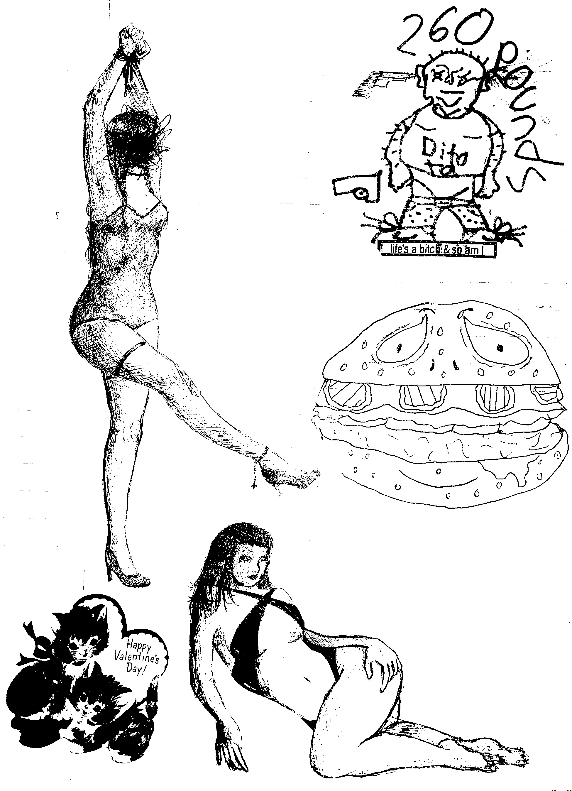 the second page of a series of naked ladies i drew. my friend drew the burger and ditota. there is also a valentines sticker on it that my other friend gave me.