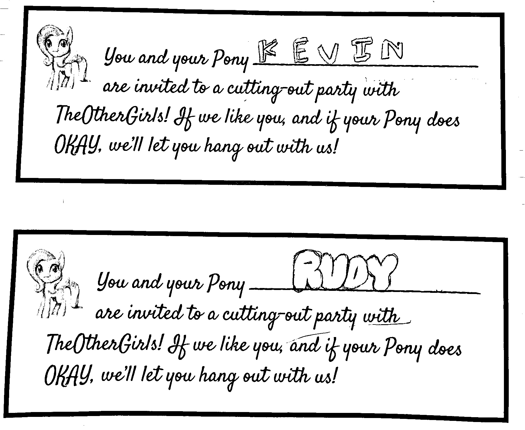 during english we had to read a short story about ponies. our english teacher gave us this paper to fill out. this is me and my friends pony.