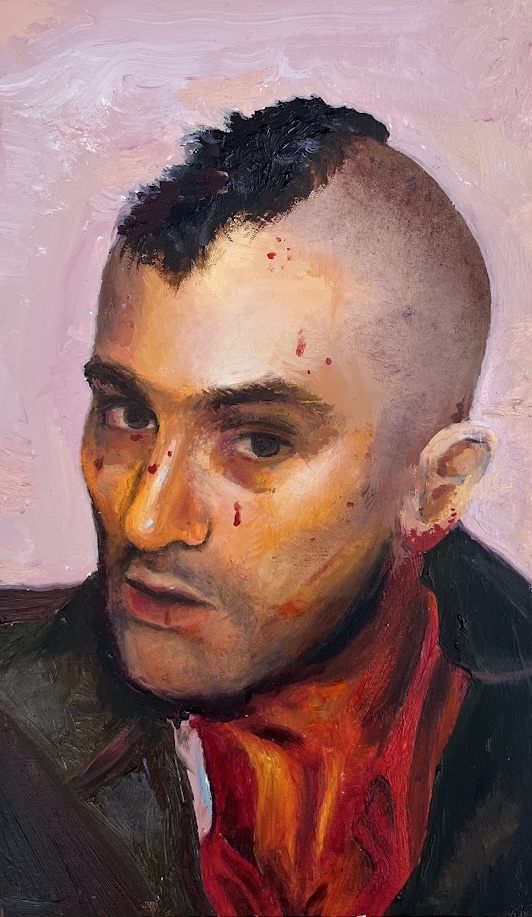an oil painting i made in december of travis bickle from the movie taxi driver